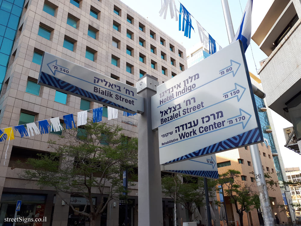 Tel Aviv - buildings for conservation - George Eliot 11Sukowolski - Danin Yehezkel and Rachel - The houses of the founders of Tel Aviv - Lilienblum St 24, Tel Aviv-YafoHanna Rovina - Plaques of artists who lived in Tel Aviv - J. L. Gordon St 36, Tel Aviv-Yafo, IsraelThe house of Hanna Rovina - J. L. Gordon St 36, Tel Aviv-YafoThe house of Yosef Aricha - Yehuda Karni St 10, Tel Aviv-YafoThe house of Israel Becker - Ha-Nevi’im St 4, Tel Aviv-YafoThe house of Shay K Ophir (Shaike) - Be’eri St 46, Tel Aviv-YafoThe house of Shay K Ophir (Shaike) - Be’eri St 46, Tel Aviv-YafoThe house of Moshe Feldenkrais D.Sc - Frug St 27, Tel Aviv-YafoShalom Synagogue - Commemoration of Underground Movements in Tel AvivShalom Synagogue - Yehoshua Bin Nun St 67, Tel Aviv-YafoTel Aviv - buildings for conservation - Sheinkin 4Tel Aviv - buildings for conservation - Sheinkin 4Ramat HaSharon - Gan HaNeviimRamat HaSharon - The sign of Saifun GardenThe house of Yonathan Ratosh - Alexander Yannai St 2, Tel Aviv-YafoThe house of Yonathan Ratosh - Alexander Yannai St 2, Tel Aviv-YafoPrague - The Jewish Quarter - U Starého hřbitova 43/5, Josefov, 110 00 Praha-Praha 1, CzechiaPrague - Celetná 592/23Training Center 1 - Ben Yehuda St 193, Tel Aviv-YafoTel Aviv - buildings for conservation - Melchett 20Tokyo - Intersection of Kiyosubasgu-dori and Mitsume-dori streetsThe house of Anda Amir-Pinkerfeld and Jacob Pinkerfeld - Rashi St 65, Tel Aviv-YafoThe house of Moshe Churgel - Ein Harod St 13, Tel Aviv-YafoTel Aviv - buildings for conservation - 19 Mikveh Israel, Beit DubitzkyThe house of Joseph Zaritsky - Mapu St 18, Tel Aviv-YafoTel Aviv port - a gateway used to deliver weapons - Nemal Tel Aviv St 14, Tel Aviv-YafoThe house of Menashe Levin - Lipski St 12, Tel Aviv-YafoThe house of Yehuda Fuchs - Ashtori HaFarhi St 12, Tel Aviv-Yafo, IsraelTel Aviv - buildings for conservation - Ein Vered St 3, Tel Aviv-Yafo, IsraelJerusalem - Mamilla Ave.Jerusalem - The Old City - Latin Patriarchate St 22Sarona compound - The fall of four Hagana fighters - Arania Osvaldo St 4, Tel Aviv-Yafo, IsraelTel Aviv - buildings for conservation - 15 HahashmalThe house of Avraham Chalfi - Israelis St 10, Tel Aviv-Yafo, IsraelThe house of Avraham Chalfi - Israelis St 10, Tel Aviv-Yafo, IsraelThe house of Benhamin Tammuz - Ha-Rav Levi Yitskhak St 13, Tel Aviv-Yafo, IsraelTel Aviv - buildings for conservation - 9 Nahalat BinyaminThe house of Dr. Haim Gamzou - Bar Kokhva St 67, Tel Aviv-Yafo, IsraelThe Etzel headquarters - Commemoration of Underground Movements in Tel AvivThe Etzel headquarters - Yehuda ha-Levi St 9, Tel Aviv-Yafo, IsraelThe house of Zvi Ben-Chaim - J. L. Gordon St 38, Tel Aviv-Yafo, IsraelThe house of Pinchas Abramovic - Yehuda Karni St 12, Tel Aviv-Yafo, IsraelRishon Lezion - A sign pointing to Rishon Lezion Winery - HaCarmel St 25, Rishon LeTsiyon, IsraelRishon LeZion - City HallTakayama - Hanari StreetTakayama - Hanari StreetTakayama - Kokubun-ji WestMoshe Halevi & Leah Deganit - Plaques of artists who lived in Tel AvivThe house of Moshe Halevi & Leah Deganit - Dov Hoz St 9, Tel Aviv-Yafo, IsraelYehud - Oklohoma ParkThe house of Zvi Friedland & Chanale Hendler - Frug St 29, Tel Aviv-Yafo, IsraelThe house of Elchanan Halpern - Yehuda HaMaccabi St 1, Tel Aviv-Yafo, IsraelTel Aviv - buildings for conservation - 2 Plonit AlleyThe house of Rafael Saporta - Alexander Yannai St 18, Tel Aviv-Yafo, IsraelGivat Shmuel - Independence AvenueThe house of Leib Glantz - Sderot Ben Gurion 56, Tel Aviv-Yafo, IsraelThe house of Leib Glantz - Sderot Ben Gurion 56, Tel Aviv-Yafo, IsraelRamat Gan - The bourse complex - direction signRamat Gan - The bourse complex - direction signTel Aviv - buildings for conservation - 2 Karl Netter - Otchakovsky HouseArms cache - Shabazi St 65, Tel Aviv-Yafo, IsraelArms cache - Shabazi St 65, Tel Aviv-Yafo, IsraelTel Aviv - buildings for conservation - 2 Dov Hoz, 1 Ben AmiTel Aviv - buildings for conservation - 2 Dov Hoz, 1 Ben AmiStrauss residence - Balfour St 14, Tel Aviv-Yafo, IsraelStrauss residence - Balfour St 14, Tel Aviv-Yafo, IsraelStrauss residence - Balfour St 14, Tel Aviv-Yafo, IsraelAvraham Shlonsky - Plaques of artists who lived in Tel AvivThe house of Avraham Shlonsky - J. L. Gordon St 50, Tel Aviv-Yafo, IsraelTel Aviv - buildings for conservation - 64 RashiThe house of Menachem Avidom - Shtand St 7, Tel Aviv-Yafo, IsraelJerusalem - Israel Train - Yitzhak Navon StationDavid and Leah Izmozik - The houses of the founders of Tel Aviv - Lilienblum St 22, Tel Aviv-Yafo, IsraelNordau/Weizman streets - Ness ZionaNordau/Weizman streets - Ness ZionaTel Aviv - buildings for conservation - 10 Yehuda HaleviTel Aviv - buildings for conservation - 10 Yehuda HaleviTel Aviv - buildings for conservation - 19 GordonBeit Shemesh - the entrance sign to the city - Ben Zeev/38, Bet Shemesh, IsraelThe house of Mia Arbatova & Yosef Goland - Sderot Ben Gurion 72, Tel Aviv-Yafo, IsraelThe house of Mia Arbatova & Yosef Goland - Sderot Ben Gurion 72, Tel Aviv-Yafo, IsraelThe house of Meir Teomi - Pinsker St 64, Tel Aviv-Yafo, IsraelTel Aviv - buildings for conservation - 48 HaKishonTel Nordau School - Commemoration of Underground Movements in Tel AvivTel Nordau School - Mendele Mokher Sfarim St 19, Tel Aviv-Yafo, IsraelTel Aviv - buildings for conservation - 13 Jaffa RoadThe house of Alexander Argov - Sirkin St 35, Tel Aviv-Yafo, IsraelKfar Saba - the intersection of Sasha Argov and Ehud Manor streetsTel Aviv - Nachlat Benyamin - Rabbi Shmuel Mohliver StreetTel Aviv - Nachlat Benyamin streetTel Aviv - buildings for conservation - 110 Ahad HaAmThe Place of the fall of Arieh Yitzhaki - Commemoration of Underground Movements in Tel AvivThe Place of the fall of Arieh Yitzhaki - Lilienblum St 11, Tel Aviv-Yafo, IsraelTel Aviv University - Entin SquareThe house of Lucio Dalla - Vicolo del Buco, 7, 00153 Roma RM, ItalyDahlia Ravikovitch St., Tel Aviv-Yafo, IsraelThe house of Dahlia Ravikovitch - Yeho’ash St 6, Tel Aviv-Yafo, Is
