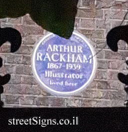 London - Memorial plaque at the house where childrens book illustrator Arthur Rackham lived