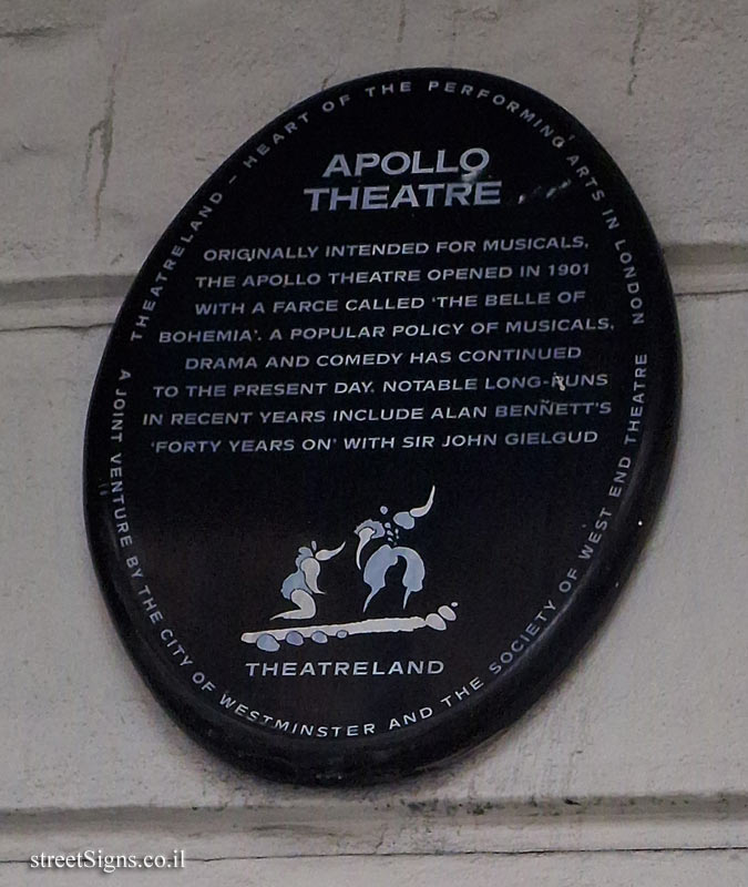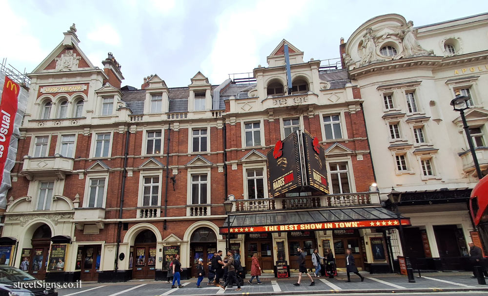 London - Commemorative plaque at the Globe Theatre (now the Gielgud Theatre)