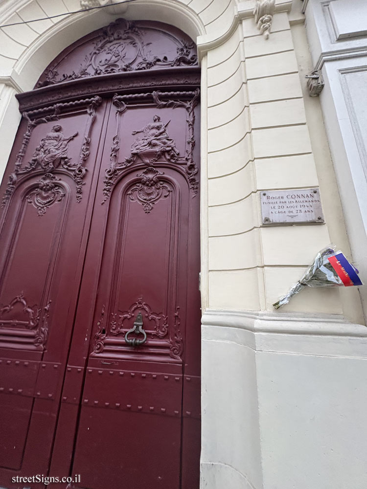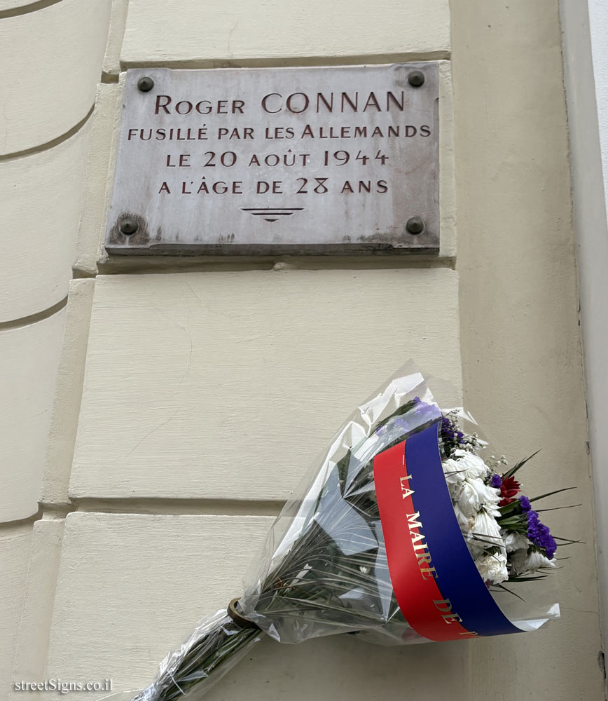 Paris - Memorial plaque for citizen Roger Connan who was killed by the Germans