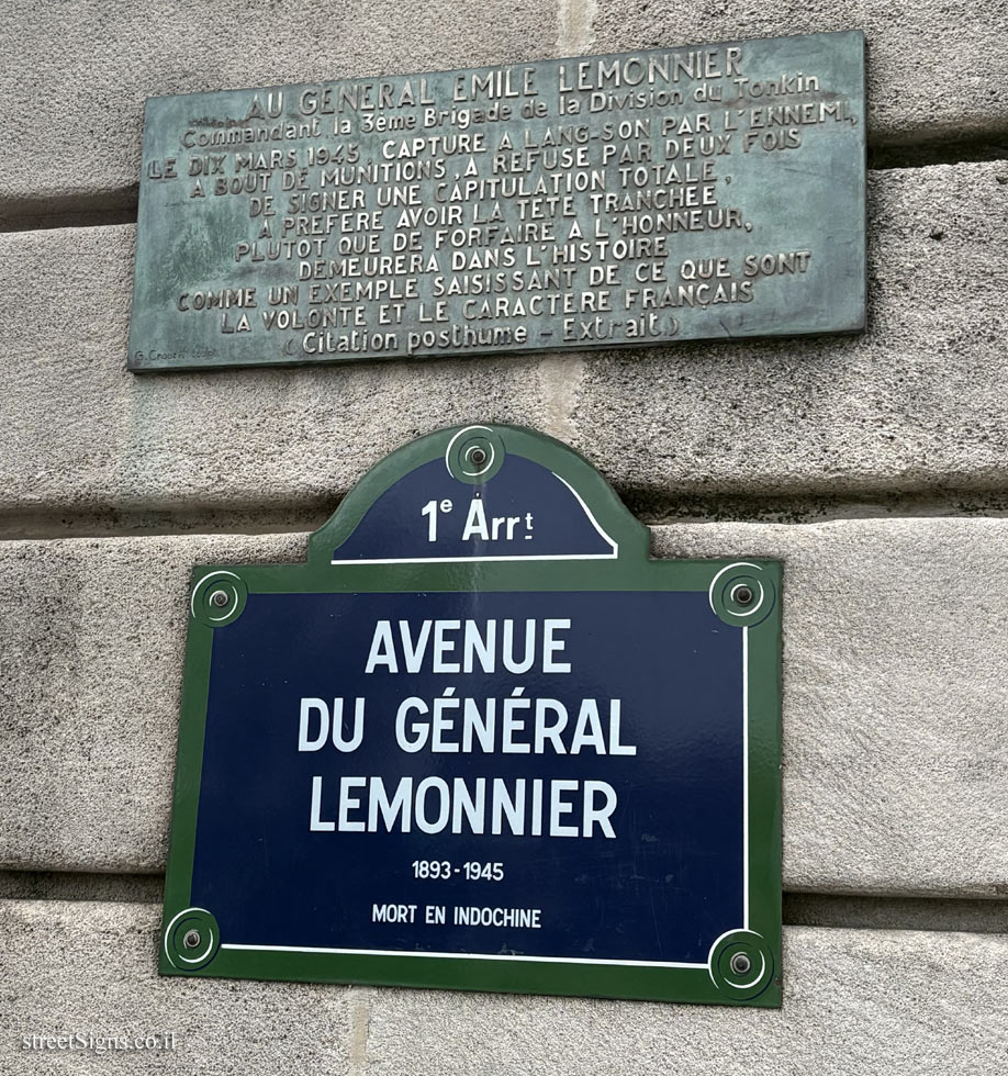 Paris - Memorial plaque to General Émile Lemonnier on the avenue that bears his name