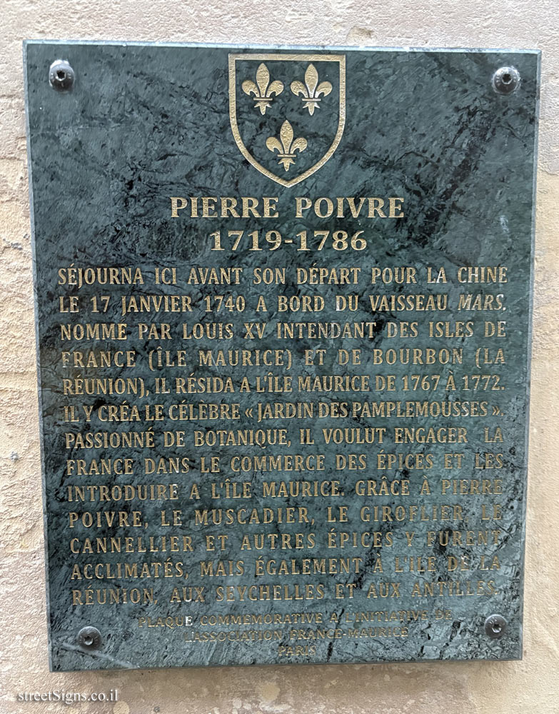 Paris - The house where botanist Pierre Poivre stayed before he set off on a journey to China