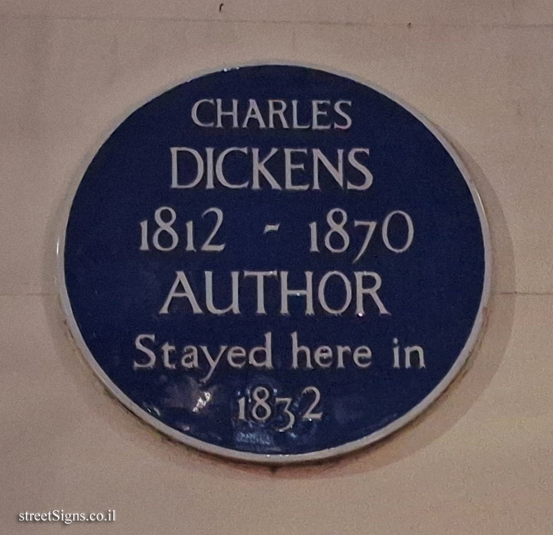 London - Memorial plaque at the house where Charles Dickens lived in 1832