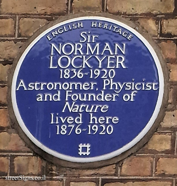 London - Memorial plaque at the house where scientist Norman Lockyer lived